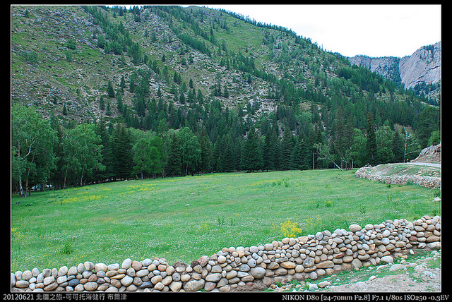 用河裡的卵石搭成的圍籬,標示了每一家的牧場界線,可可托海是哈薩克人的夏牧場,冬天的時候,他們就打包氈房,驅牛趕羊,下山過冬。