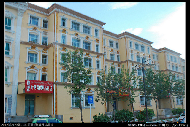 這是布爾津,由於已近邊境,建築有點俄羅斯的味道,當然可能是官方刻意想把它規畫成一個歐式小鎮,但它畢竟不是。遠觀還有點歐風,近看卻是一片片貼皮的磁磚和五顏六色的鐵皮,實在沒有質感。
