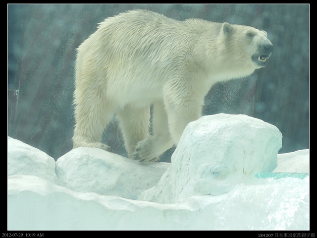 感覺不是很大的北極熊,奇美博物館那隻標本好大隻。這麼熱,牠一定很痛苦吧。