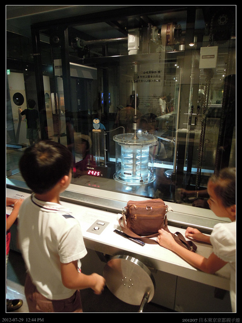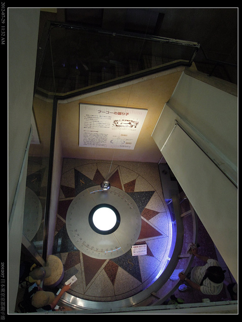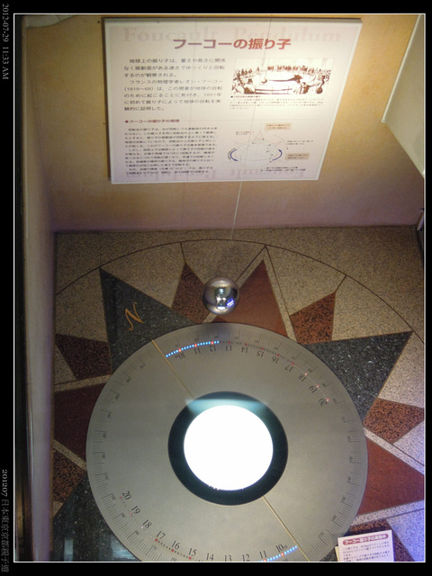 日本館的一樓到三樓樓梯間,高懸著傅科擺,這幾乎已經是大部份科學博物館的常備設施了,兒子和女兒已經是第二次看過,再經過老爸的解說,他們也慢慢能了解傅科擺如何證明出地球自轉。