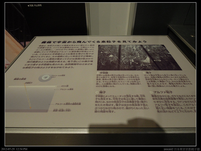 最好玩的宇宙輻射觀測-霧箱(中文好像叫雲室),這是個好玩的裝置,利用過飽和的水蒸氣來呈現荷電粒子和宇宙輻射的軌跡和存在。