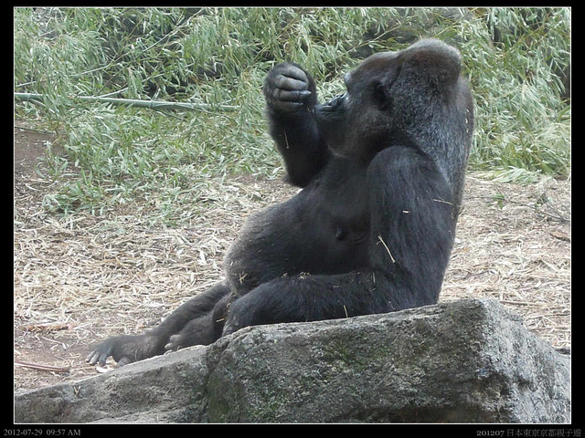 看到這隻猩猩,有點難過。如果牠有知,是如何看待自身的處境呢?不就才一百年前,很多人不也用現在我們看牠的眼光在看別人?