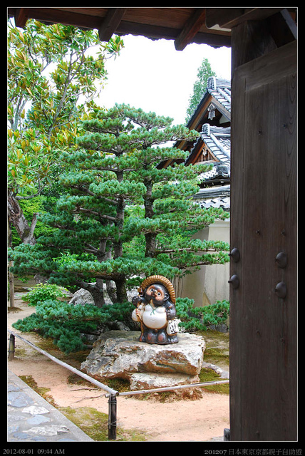 日本人很喜歡狸貓,有時在餐飲店前,特別是居酒屋,經常可以看到門外會放著一隻頭戴斗笠,手拿酒瓶的狸貓像,我一直很好奇,後來才知道,日本狸貓有幸運招財之神的意思,而且日本也蠻崇敬狐狸的,認為牠們是農業神祇稻荷神的使者,這部份和我們中國的文化就有點差別,但我們對狐狸應該是又懼又敬吧!