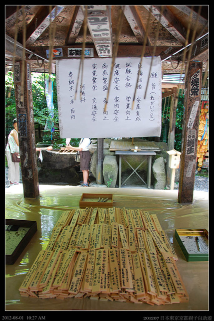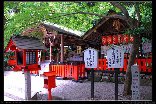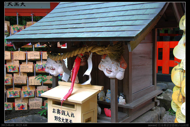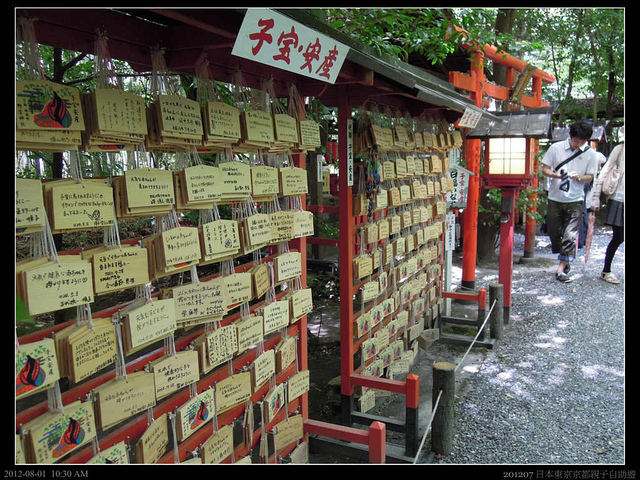 不大的神社,香火挺旺,滿滿的一牆繪馬,和許多皇室貴族的參拜記念。