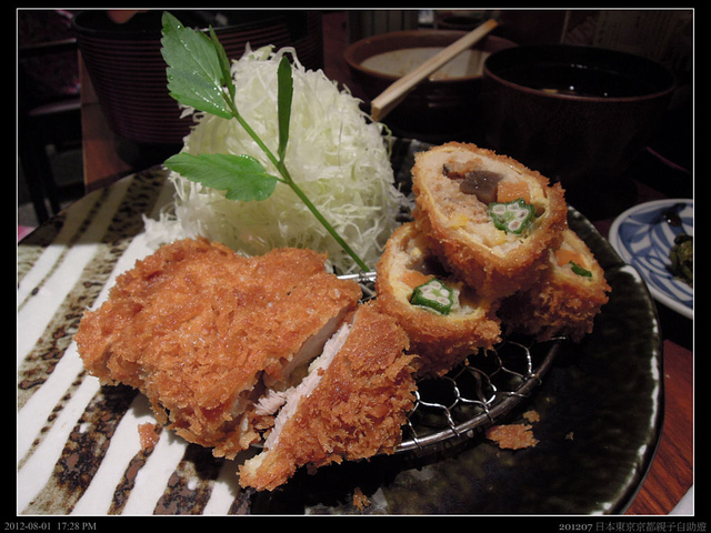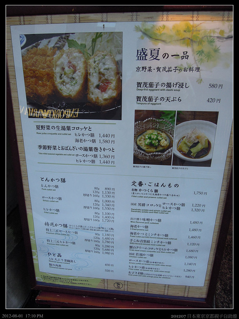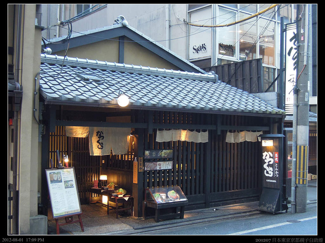 旅行的節奏進行的相當快,搭上99路公車直達烏丸,京都最熱鬧的地方雖然就是四条烏丸附近,但和新宿或大阪一帶相比,就遜色許多。Sharo亂亂逛,我也四處找找吃的,後來發現在巷子內有一家"一休庵",名代豬排好像有聽過,打電話回台灣向表妹確認,選定今日晚餐。