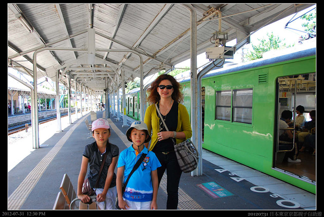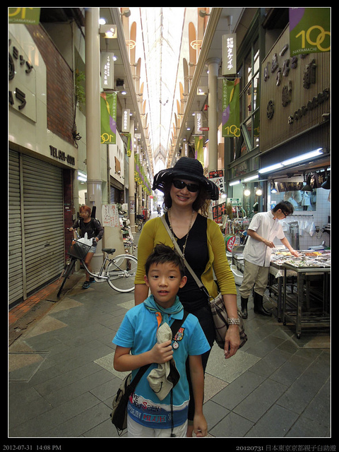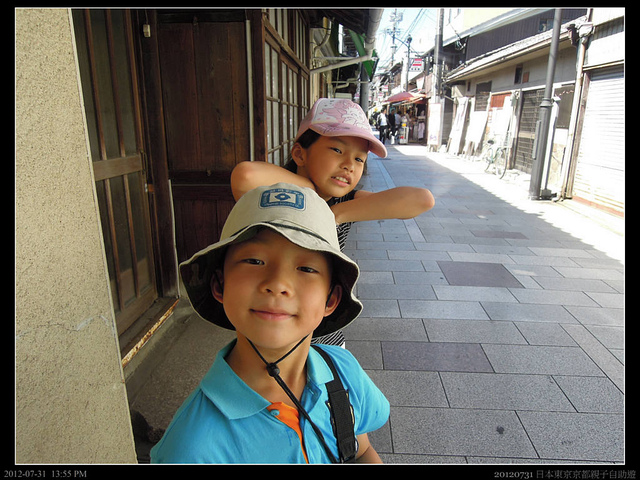 回到京都,領了行李,我們訂的飯店是在大宮站的Hotel Villa Fontaine VILLAGE KYOTO。我們在京都站搭地下鐵到四条站,再拉行李到京阪電車的烏丸站,轉搭往大宮的電車。京都畢竟比不上東京,雖然KYOTO和TOKYO看來差不多,但很多地鐵站就沒有電動手扶梯,讓我們拉著大行李的旅客累得滿身大汗。後來在京都混熟了,發現也可以搭市內巴士,大概是206號,可以由京都站直達四条大宮站。而且暑假時,京都巴士有ECO-SUMMER的活動,小學生搭車不用錢(大人一上車就是220JPD)。不然京都的計程車也不貴,起跳二公里大約是500多日幣,像我一家四口其實還划算。不過和日本司機對話,日文或笑容至少要有一項。