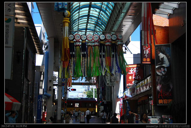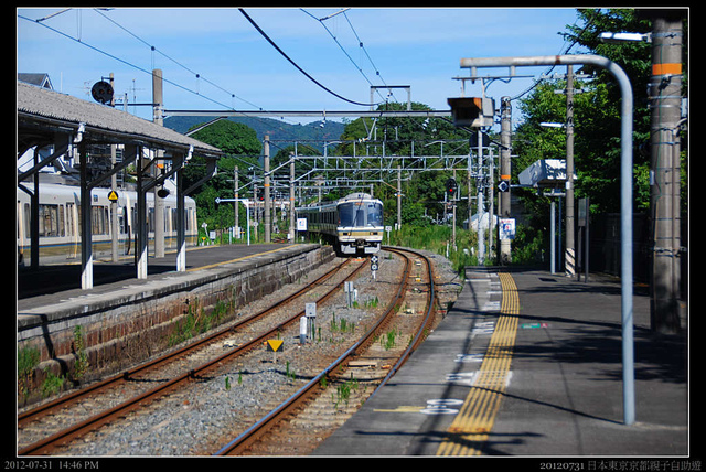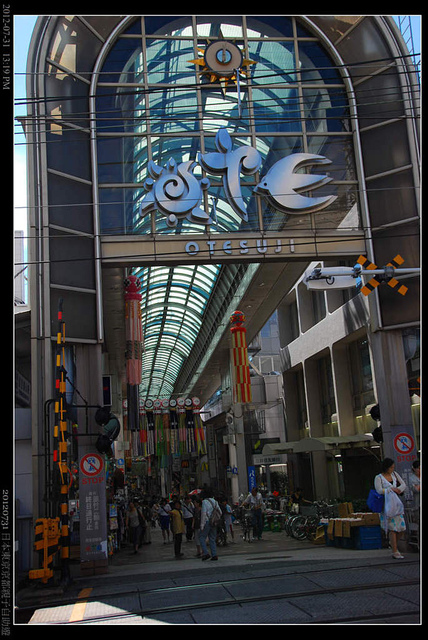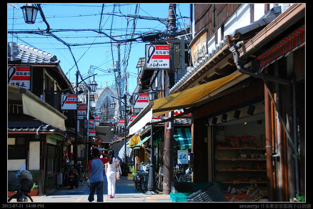 出了御香宮神社,一直沿著主要幹道,道路末端是一個平交道,而平交道後就是商店街。平交道是屬於私鐵京阪線的鐵道,我之前來的時候應該是坐這條路線,因為印象中好像下車沒多久就到燒烤和酒家了,JR桃山站其實離伏見桃山市區有點遠,天氣熱的時候走起來還真的有點受不了。更何況現在可是日正當中的下午二點。