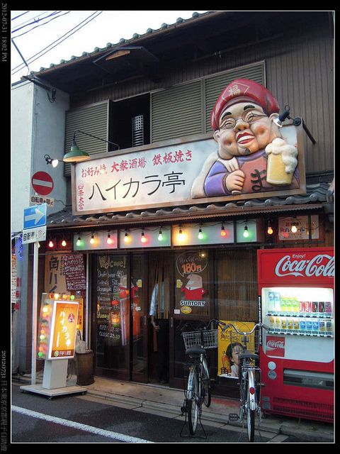 大概就是這家燒烤店吧!現在好像是老人家在做尋舊之旅,上次來的時候,記得排了滿滿的兩大桌,串燒不斷的上來,吃了好幾萬元日幣。日本人嘛!也是利用客人在可以報公帳的時候出來大吃大喝,我們好像才三個人,他們倒是出來十多個,簡直是單位聚餐,吃到最後,大家都HIGH,他們部長堅持要我們一人拿一瓶古都千年回台灣,就這樣,種下了這裡的記憶。