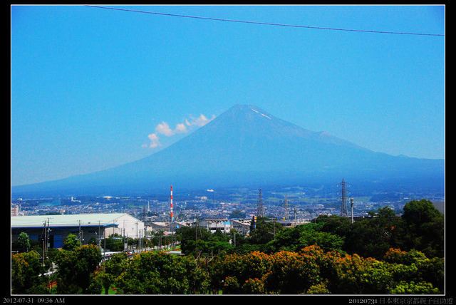 一路南行,可以清楚的看到富士山和東南面(右側小丘)的寶永山,那是三百年前,富士山到目前為止最後一次的寶永大噴發留下的寄生火山。