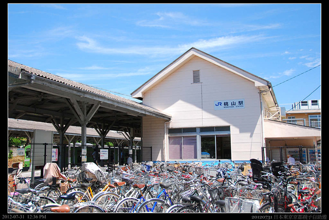 搭乘JR往桃山站,這裡有著名的伏見桃山陵,是日本明治天皇的陵墓,我當然不是為此而來。大約近十年前,來日本出差,曾經和日本客戶到此一遊,伏見桃山這裡最有名的其實是地酒,因為它的水質很好,因此產了許多有名的好酒,而且地酒和我們一般知道的清酒不太一樣,它的保存期限不長,而且要冷藏。當年日本的客戶好意地送了一瓶京都地酒"古都千年",不僅在飯店冷藏,隔天還千里佻佻地把它提回台灣,Sharo當時一喝,驚為天人。一直念念不忘,所以一提要到當年買酒的伏見桃山,立刻答應。