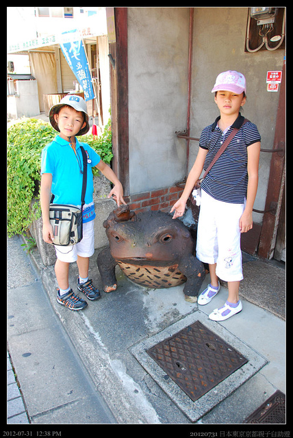 天氣很熱,沿著住戶的簷下行走,突然看到好大一隻蟾蜍,不知道日本的蟾蜍也是用來咬錢的嗎?