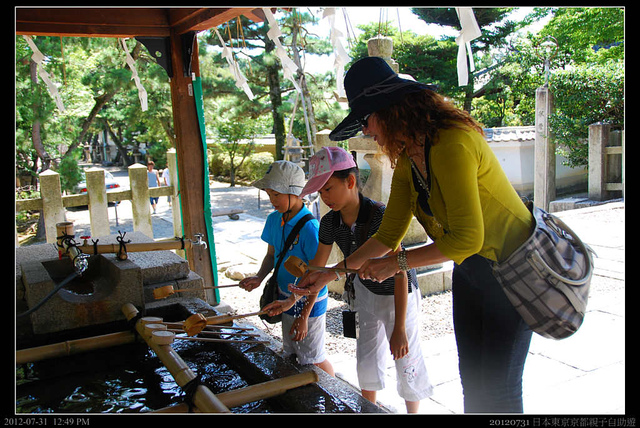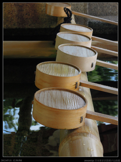 入神社前要到水手舍洗洗手,理論上,一瓢水洗了左右手後,應該還要用手掬了漱漱口,不過衛生起見,還是洗洗手就好啦