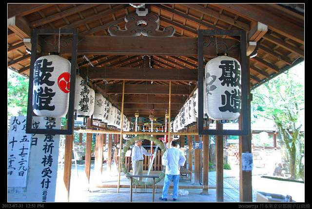 參觀的這幾天,正好是明治天皇的逝世百周年祭日,在走廊上正在安置下午要舉行的"茅の輪神事"(不知道明確的意思!)望圖生意,大概是和生產,產道有關的吧!