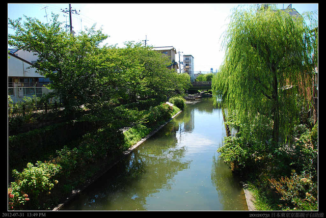 酒場後頭有一小河,遠處有一個十石舟乘船處,不知是船家休息了,還是季節不對,河面上並沒有船隻,櫻花季節,兩岸櫻花滿開,岸旁的柳樹濃綠,好不悠然。不過現在只有綠柳成蔭。