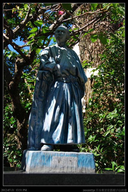坂本龍馬的銅像,小小的一尊,就在"大政維新"即將實現之際,坂本龍馬遇刺身亡,得年卅三歲。雖然得年不長,但他不僅讓日本歷史產生重大的變化,也對東亞歷史有深刻的影響