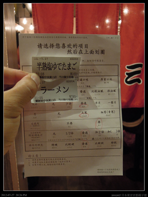 20120807000620120727 出發往日本東京/新宿一蘭拉麵