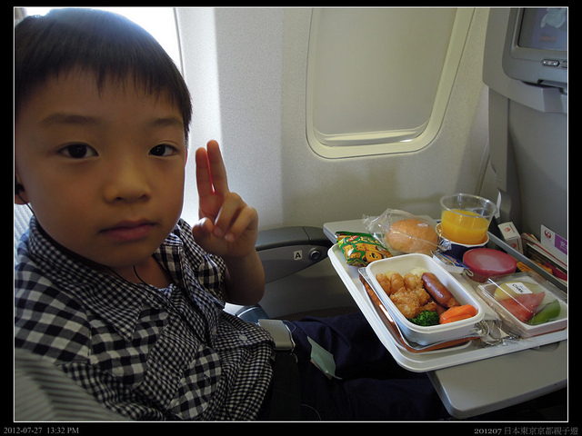 由桃園飛東京成田大約要三個半小時,特別幫小朋友點了兒童餐。去年到英法倫敦巴黎時,姐姐好像有點被長達十多個小時的航程嚇到了,回國後就一直吩附今年不要去那麼遠的地方,兒子想去日本,其實他們第一次出國就去日本的黑部立山,那是兒子四歲的時候;後來又去了一次京阪神的自由行。朋友一直都笑帶這麼小的小朋友出國是浪費錢,其實我是想,讓他們從小就知道有個除了台灣之外的世界,很大很大,或許有一天他們會忘了,但是我也很認真地用相機和部落格"拍照留文存證",在他們的心中,一定會有記憶,而也是我們做父母日後對他們最大的回憶了。更何況,我們自己也想去嘛!自助旅行,總比不上跟團旅行費用高,印象深刻,又可隨意安排行程和時間,最適合我這種愛折騰的父母了....