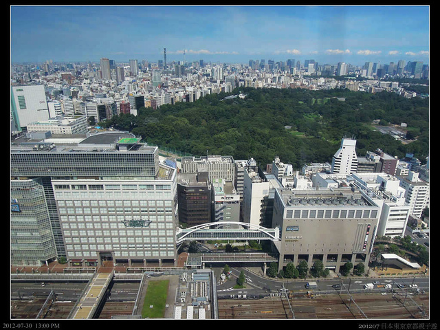 好像還沒白天看過飯店外景,遠方那枝就是晴空樹啦!中間那片綠意則是新宿御宛,很棒的賞櫻聖地,我第一次的櫻吹雪就是在這裡看的。車站對面則是高島屋百貨和紀伊國屋書店。