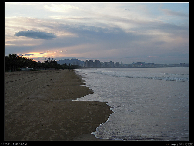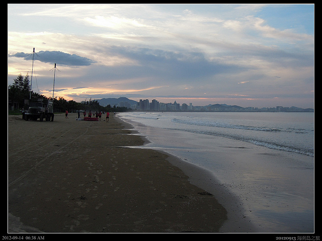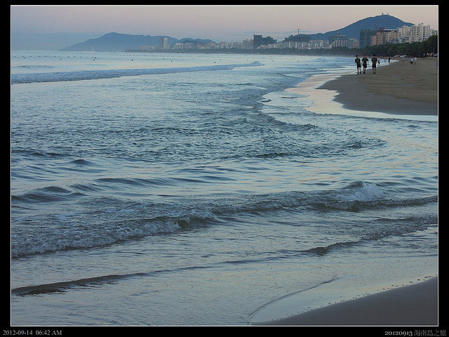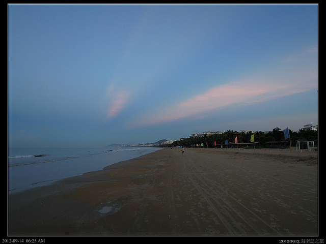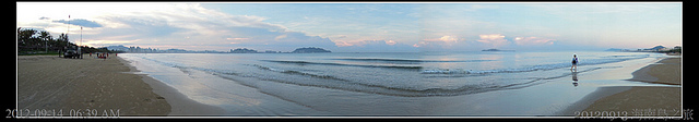 六點多清晨的海岸顯得空空蕩蕩,只有幾個散步的人,享受著南洋的微風!