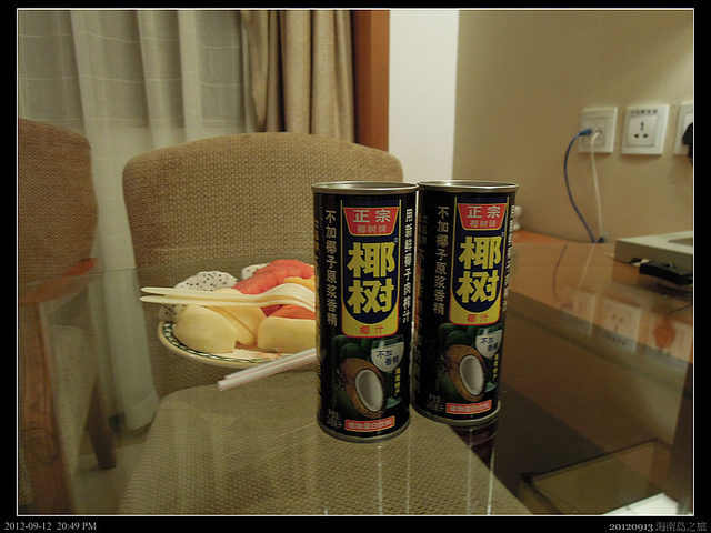 今天住的飯店是市區中新奧斯羅克酒店,不是原本預訂的皇冠濱海渡假村,原因是由於明天由西線環島高速往海南島三亞市。一進房間,桌上擺了海南名產椰子汁,後來知道這是椰樹集團的產品。椰樹集團是海南島第二大企業,為什麼要特地提及此項呢?因為我們是考察團嘛!