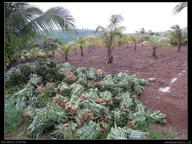 另一個的通天基地。東泰公司業大地大,每一個基地都上數千畝地,管理也很簡單,基地設經理一名,下面有數個長工幫忙農務,雖然號稱椰子可以有三百多種用途,但是在這次旅程中並沒有看到該公司的椰子的相關產品和相關生產設備。