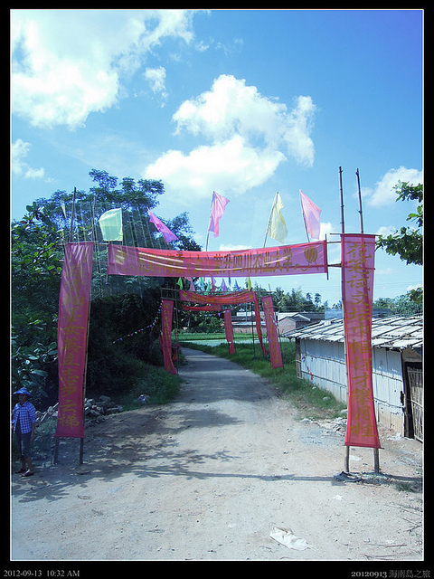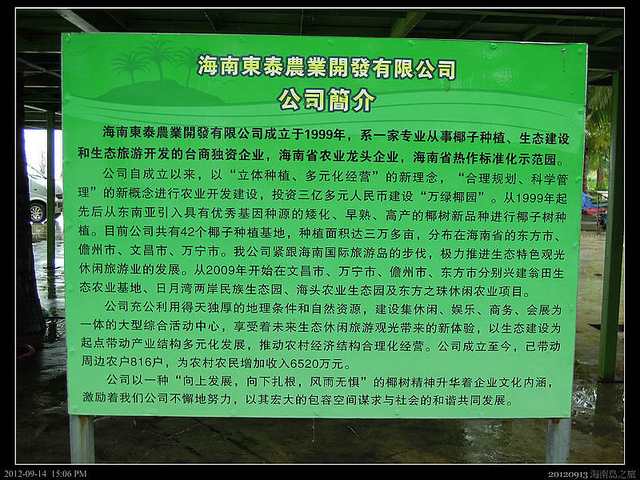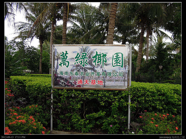 第一個行程似乎是前往萬綠椰園的儋州基地,它位在海南島的儋州市附近,沿途看來還蠻鄉村,前往各村莊的小路有時立滿了紅色布牌,仔細一看,才知道是慶祝各村學子考上全國各大學,海南島雖然處在海外,卻也是好文之地啊!