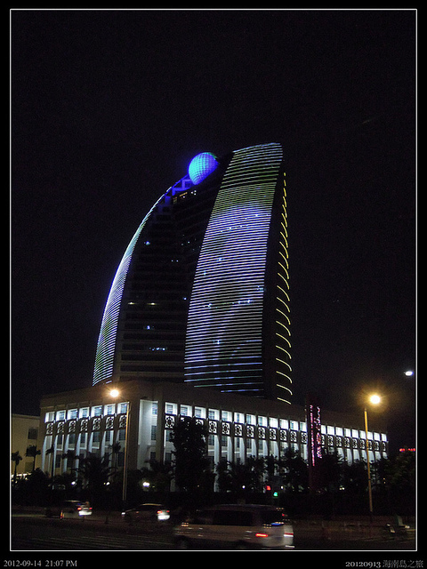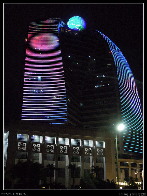 海口市燈光燦爛,擬帆船酒店的大樓外表光鮮亮麗,但大陸多的是外表光鮮亮麗,內在腐朽不堪的東西!