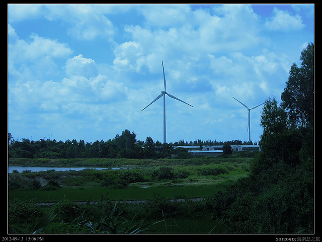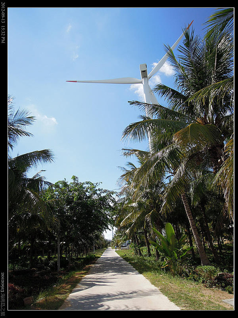 繼續前往萬綠椰園的四更基地...路邊立了好多風力發電機,這裡離海岸線大約只有幾百米,所以路邊也有不少漁塭