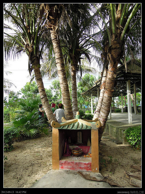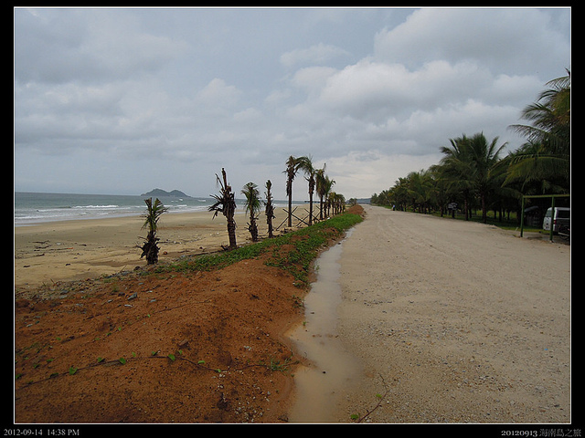 又是另一個基地,這裡就是發生東方市政府和別的開發商侵占四十多畝沙地的東方基地。那一棵椰子生了五胞胎,所以弄了個小廟供奉,聲稱拜了椰子可以生孩子。其實這個基地剩不到幾畝地,不知是被侵占還是被徵收當公路用地了....大陸的土地徵收速度很快,補償金也不少,不過我看過幾則新聞都是中央政府撥款後被地方政方給貪污了。