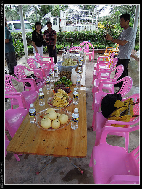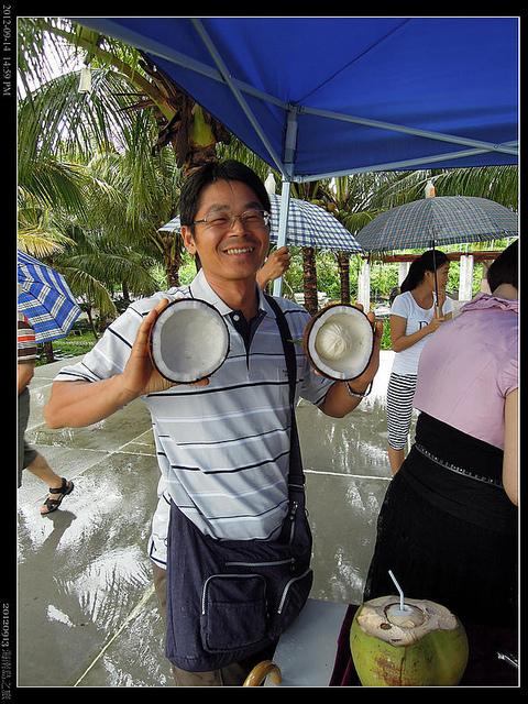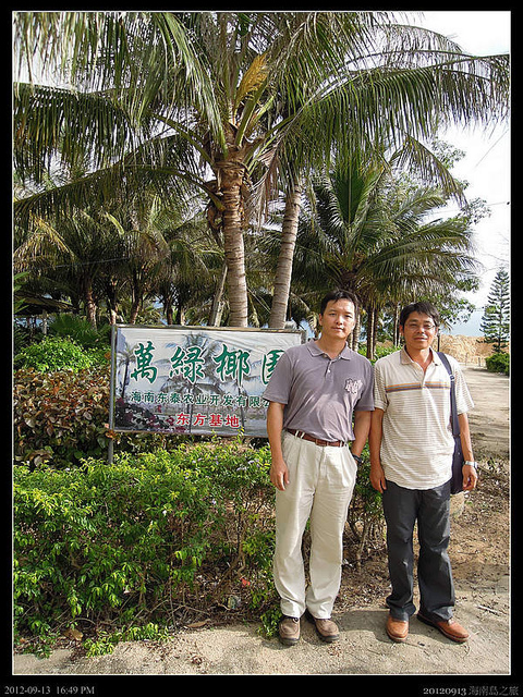 說到"莫名其妙" ,可真是莫可名其妙,原本想像中的海南島應該是沙灘,陽光,幾棵椰子搖曳還有不時由飯店走出的比基尼女郎和一點點的粉紅色,不過拿到的行程表中卻不是幾棵椰子樹,而是成片成片的椰子基地,而團員也由我們幾個人又加上了七八位尚不知其名的台北團友。