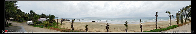 離開儋州基地,前往八所港附近的星星海岸吃午餐,八所港在二戰期間有很深的歷史意義,當年除了有盟軍的戰俘營外,據椰子媽媽說八所港也是當年台籍日本兵被調前往的"南洋",可惜我找不到相關的資料,只知道當年日本在八所和石碌間利用戰俘和勞工建鐵路,後來還屠殺了二萬名勞工,以致於在萬人坑的遺址還曾建有紀念碑,不過後來被東方市政府推倒蓋飯店,看來中共為了經濟,什麼事都幹的出來,或許精確的說是地方官員為了私利,什麼勾結都搞的出來,也難怪椰子媽媽的椰子基地在2009年被和東方市政府勾結的其它開發商硬生生的挖了四十多畝的沙和椰子樹。