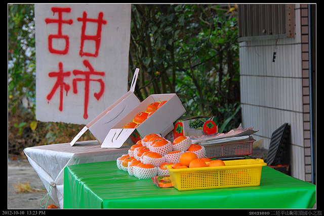隙頂國小邊的農家陳先生是退役的S-70C機工長...種的富有甜柿又大又甜..每個小朋友和每戶人家都收到一顆現採甜柿當禮物...