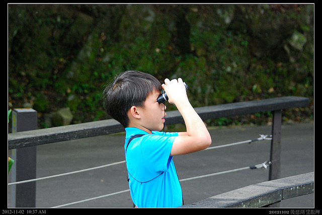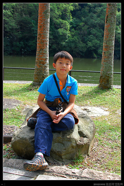 終於到了後慈湖,兒子拿出望遠鏡,有模有樣的,不知道在瞅什麼?