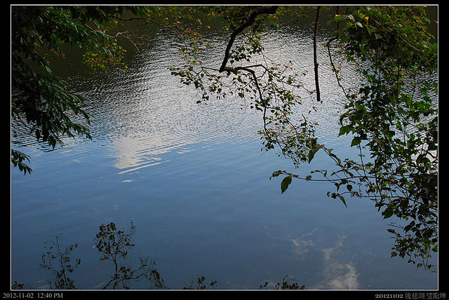 這一片平靜的湖水,就是引人入勝的後慈湖,原名是"龍過脈埤",後來就如同大家知道的,因為老蔣想念王太夫人,就改名為慈湖了。