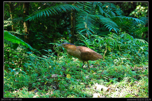 赫然在路邊離不到兩公尺看到一隻黑冠麻鷺,自不待言相機拿起來一陣猛拍,一開始解說認為是竹雞,不過回來查了一下應該是黑冠麻鷺,就順便正了名。黑冠麻鷺最近好像蠻常在人類日常活動區域出現的...不知道牠慢慢習慣人類了嗎?