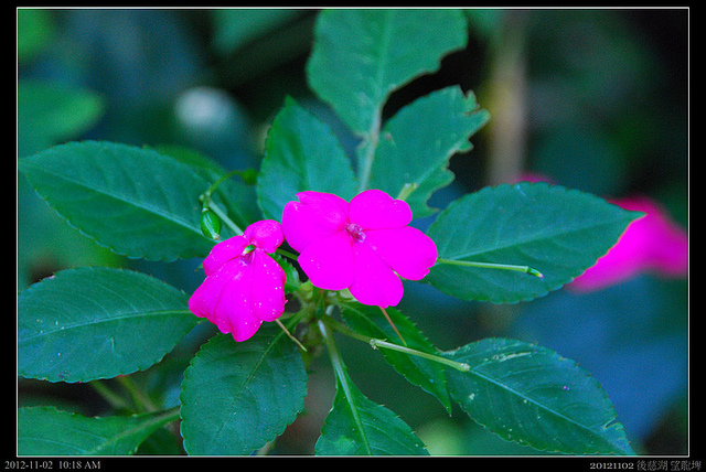 後慈湖步道內各式各樣的植物,再加上解說更顯得精采,像這非洲鳳仙花的花芯一綠一紅,原來是雄和雌的差別!如果不是專心聽解說還真無法了解!