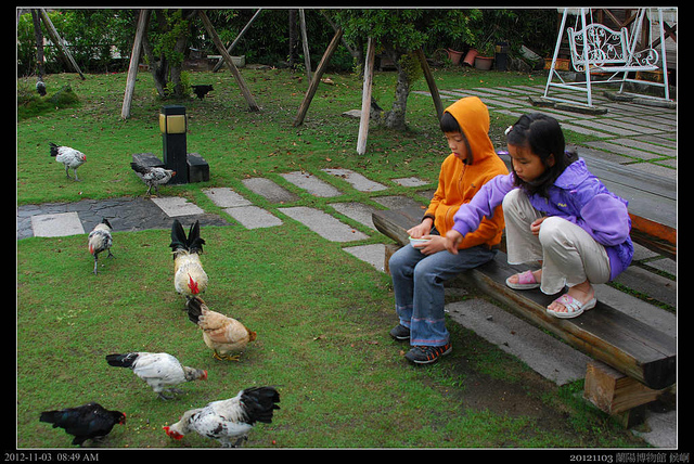 等吃飯,週五夜住宿的人竟這麼多,一下子還沒位子用早餐,小朋友在院子裡餵雞,我隨手拍拍照,老婆開始著手整理行李....