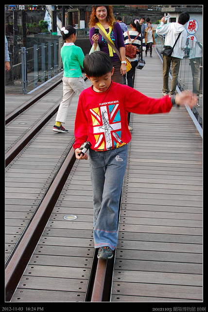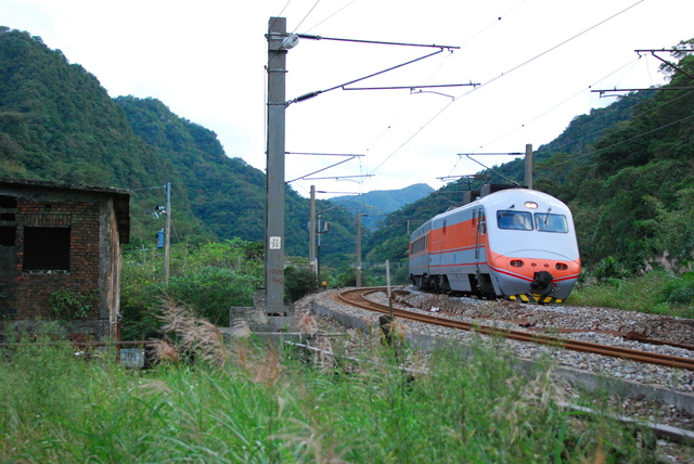 火車....路邊的鐵軌上,突然來了一輛拖拉式的自強號,嚇一跳