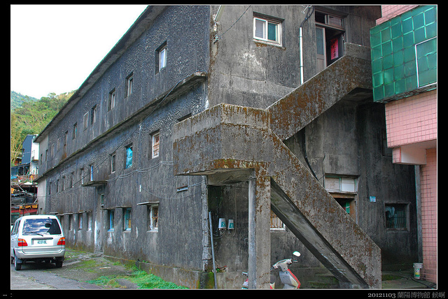 一棟外表粗黑,一格窗戶就是一戶人家,這裡是用美援蓋成的礦工宿舍,所以又叫"美援厝"。