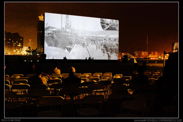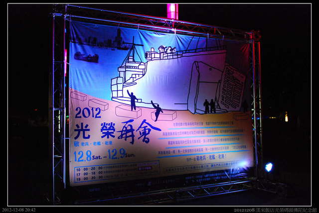 碼頭上剛好在播放光榮碼頭和其相關的老兵,老艦的歷史!