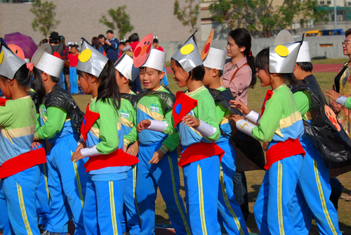 四年級進場表演 ,據說是鹹蛋超人。。。