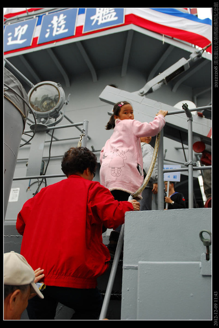 終於排到我們了,還蠻有解說流程的,登艦前先來個艦史回顧!這艘艦可是參加過民國三十九年的古寧頭戰役和八二三砲戰的"歷史名艦"。