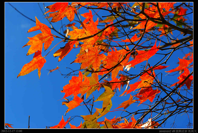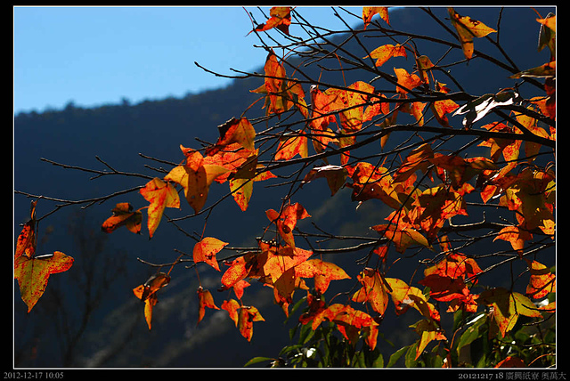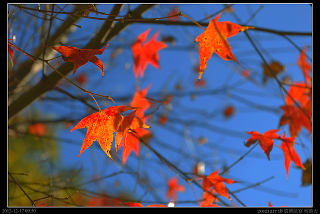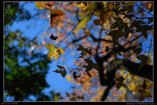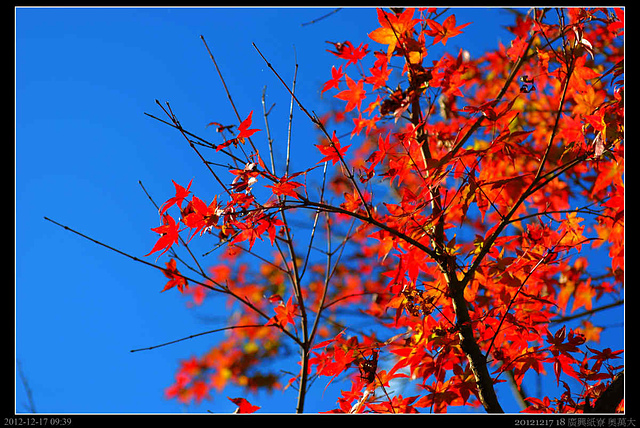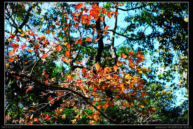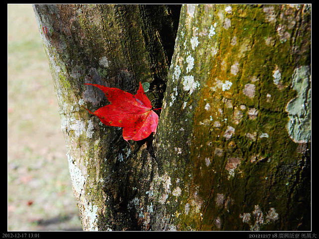 路上開始出發深紅的楓葉,不知道為什麼有些樹葉會在秋冬變為紅色或黃色,或許生物的機制是可以被解釋的?但不曉得為何它要如此?對它的生存有什麼優點?天地間令人好奇或不解的東西太多,愈來愈了解所知太少.....太少...