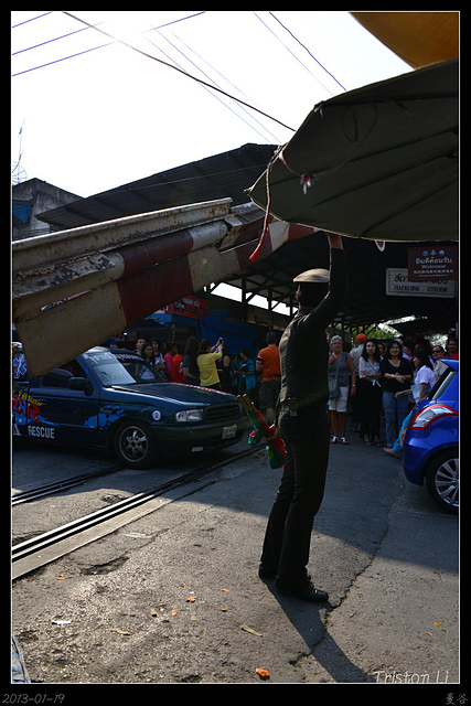 火車緩緩離去,欄杆立起,雙向車流人流開始散去,遊客開始離開各自找各自的導遊和遊覽車,今天的鐵道市場大秀就此結束。很有趣的吧!