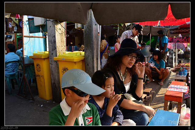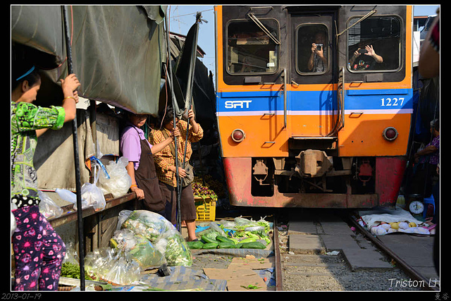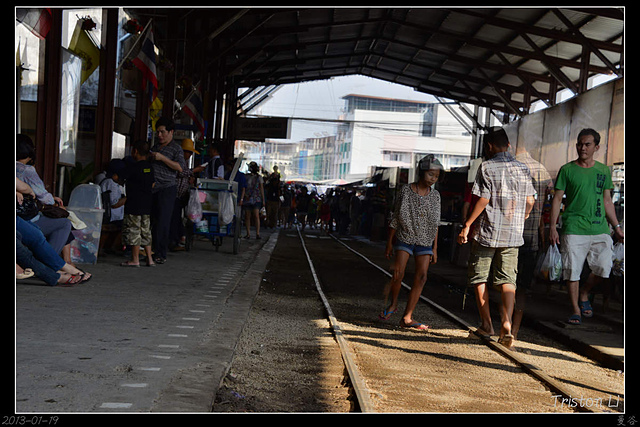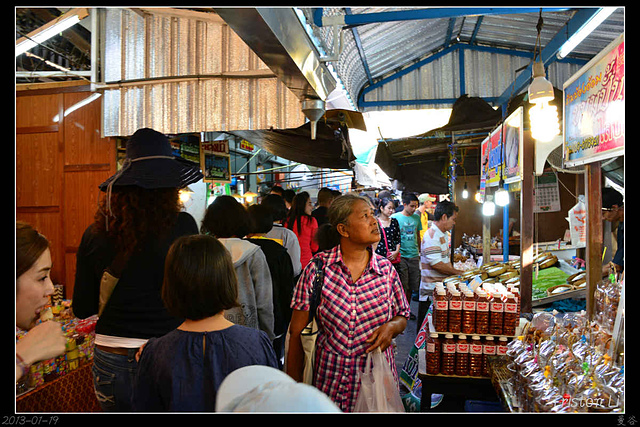 這個小地方的攤販早就對來自世界各國的遊客習以為常,或許因為觀光客的到來,反而促進了點經濟繁榮。幸好泰國的政客不像台灣的政客這麼有為,沒有豬頭到要把這個具有特色的地方作個改造。