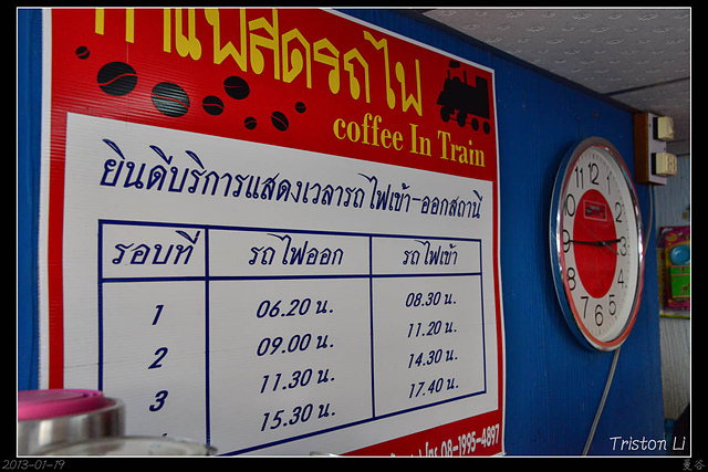 鐵道市場入口有攤奶茶舖,幾乎所有的導遊有推薦她的奶茶,所以生意挺火紅。我們原本要等的火車是14:30到站,不過後來傳來消息,要延誤一個小時,所以原本擠在好位置要拍照的人都散了。