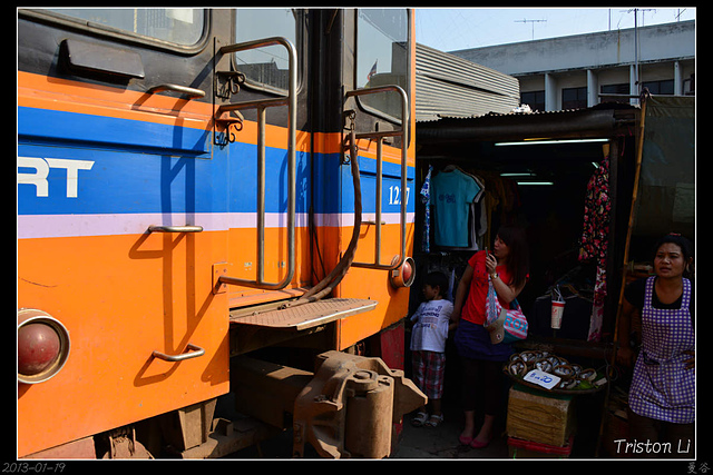 回到美功車站,其實這個車站原本也就是這條鐵道路線的終點,火車到達這裡,立即就要折返曼谷西南的WongWian Yai火車站。由這裡到曼谷市區的車站,搭公車不過一個多小時,但搭火車得搭四個小時,夠悠閒了吧!
