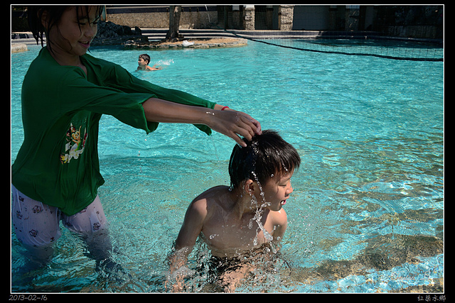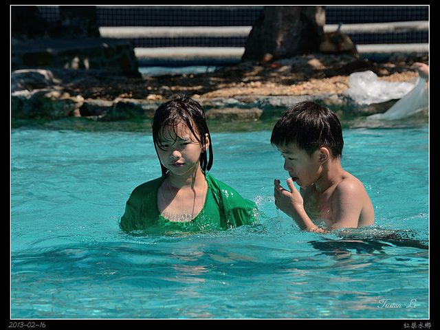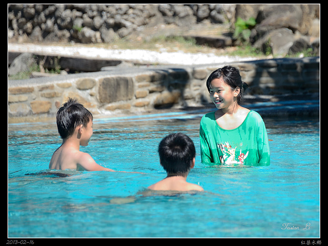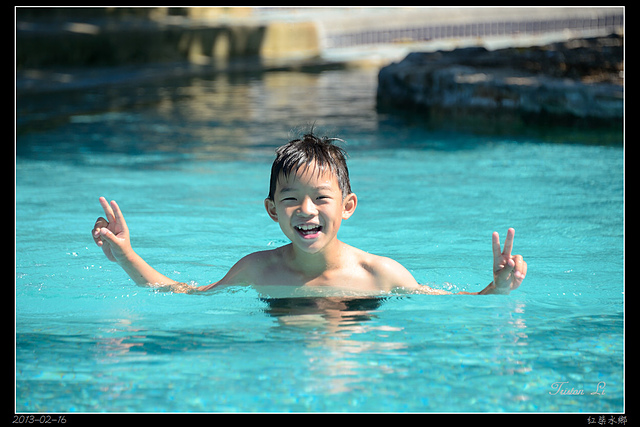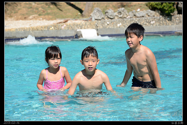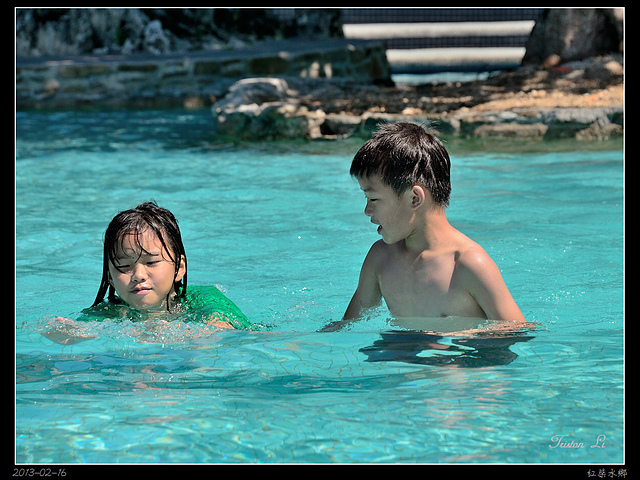 吃完早飯,又是玩水時間,紅柴水鄉最好的地方是一個大大的游泳池