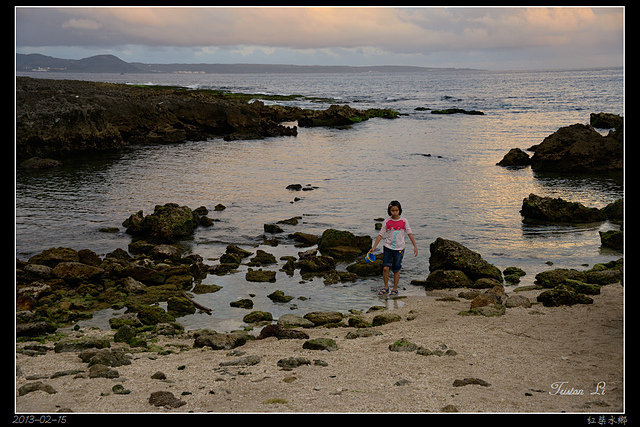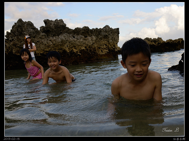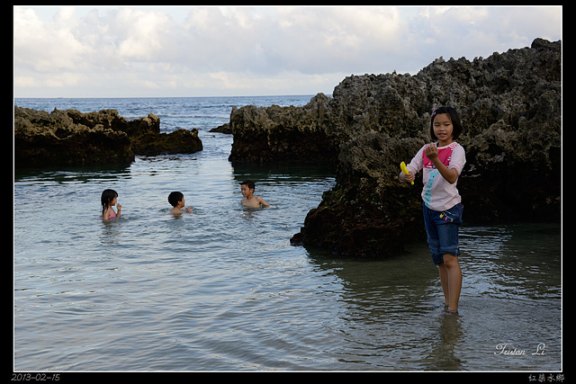 這一灘小海灣不大,淺淺的水,有很豐富的潮間帶生態,海參,海膽和海星,不時可見,小朋友最喜歡的,當然是捉寄居蟹,不過我們也只讓他們捉捉好玩,這裡的東西是絕對不能帶走的。帶走又有什麼用呢?不就是滿足一下貪心的感覺而已,那些生物一離開海水就活不了了。。