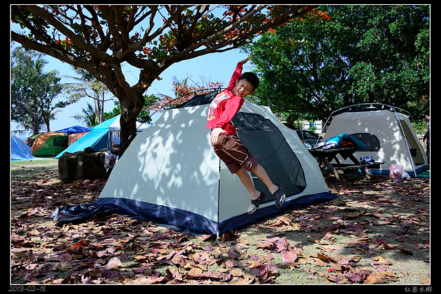 今天的營地是墾丁有名的紅柴水鄉,同學來了好多次,我們之前雖然常露營,但這裡倒是第一次來,不知是太久沒露營,還是我們都走簡單路線的,這裡的費用大人一個400,小孩一個200,比之前的經驗貴了些。不過它的環境還不錯,面海的大草坪,只是春節期間,露營的人多了,草皮上多了些不該出現的垃圾!